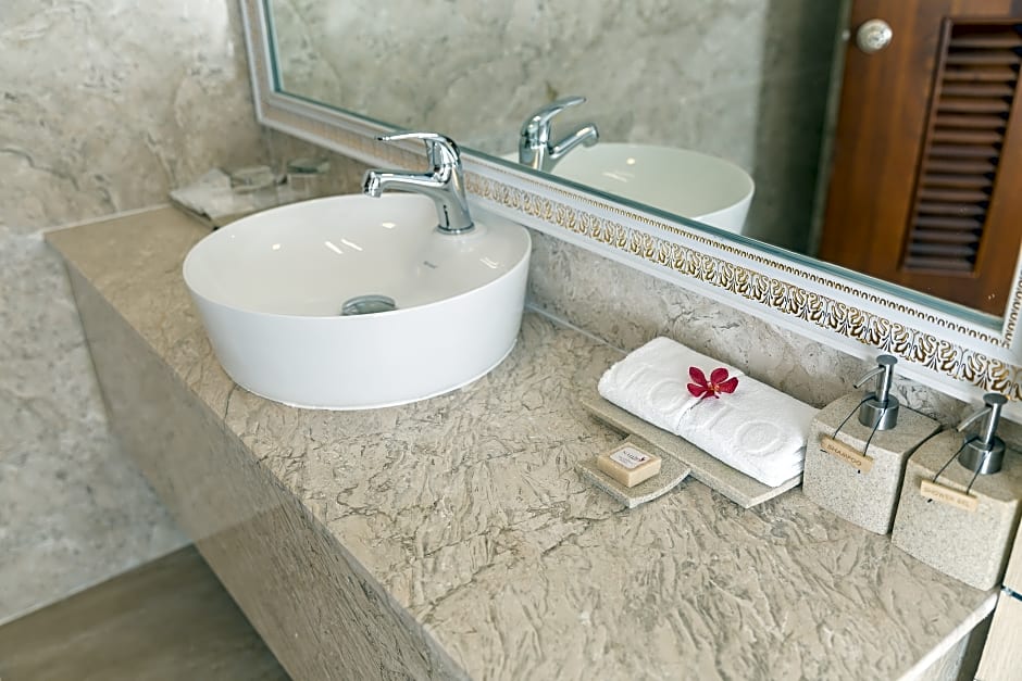 This double room's special feature is the pool with a view. Providing free toiletries and bathrobes, this double room includes a private bathroom with a walk-in shower, a hairdryer and slippers. The spacious air-conditioned double room provides a flat-screen TV with cable channels, soundproof walls, a mini-bar, a wardrobe as well as sea views. The unit offers 1 bed.